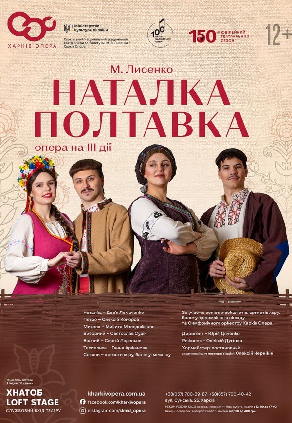 Опера "Наталка-Полтавка" відбудеться 21 березня 2026, 16:00, субота в ХНАТОБ LOFT STAGE. За допомогою сервісу internet-bilet.ua, Ви зможете з легкістю забронювати, замовити та купити квитки на концерт, спектакль, оперу, балет, майстер-класи, спортивні та дитячі заходи, що Вас цікавлять, оплативши їх найбільш зручним для Вас способом: через інтернет банківською карткою VISA/MasterCard, готівкою або кур'єром, якщо зробите замовлення квитка з доставкою.