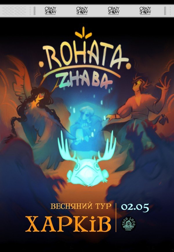 Rohata Zhaba відбудеться 2 травня 2026, 19:00, субота в Taco-Loco. За допомогою сервісу internet-bilet.ua, Ви зможете з легкістю забронювати, замовити та купити квитки на концерт, спектакль, оперу, балет, майстер-класи, спортивні та дитячі заходи, що Вас цікавлять, оплативши їх найбільш зручним для Вас способом: через інтернет банківською карткою VISA/MasterCard, готівкою або кур'єром, якщо зробите замовлення квитка з доставкою.