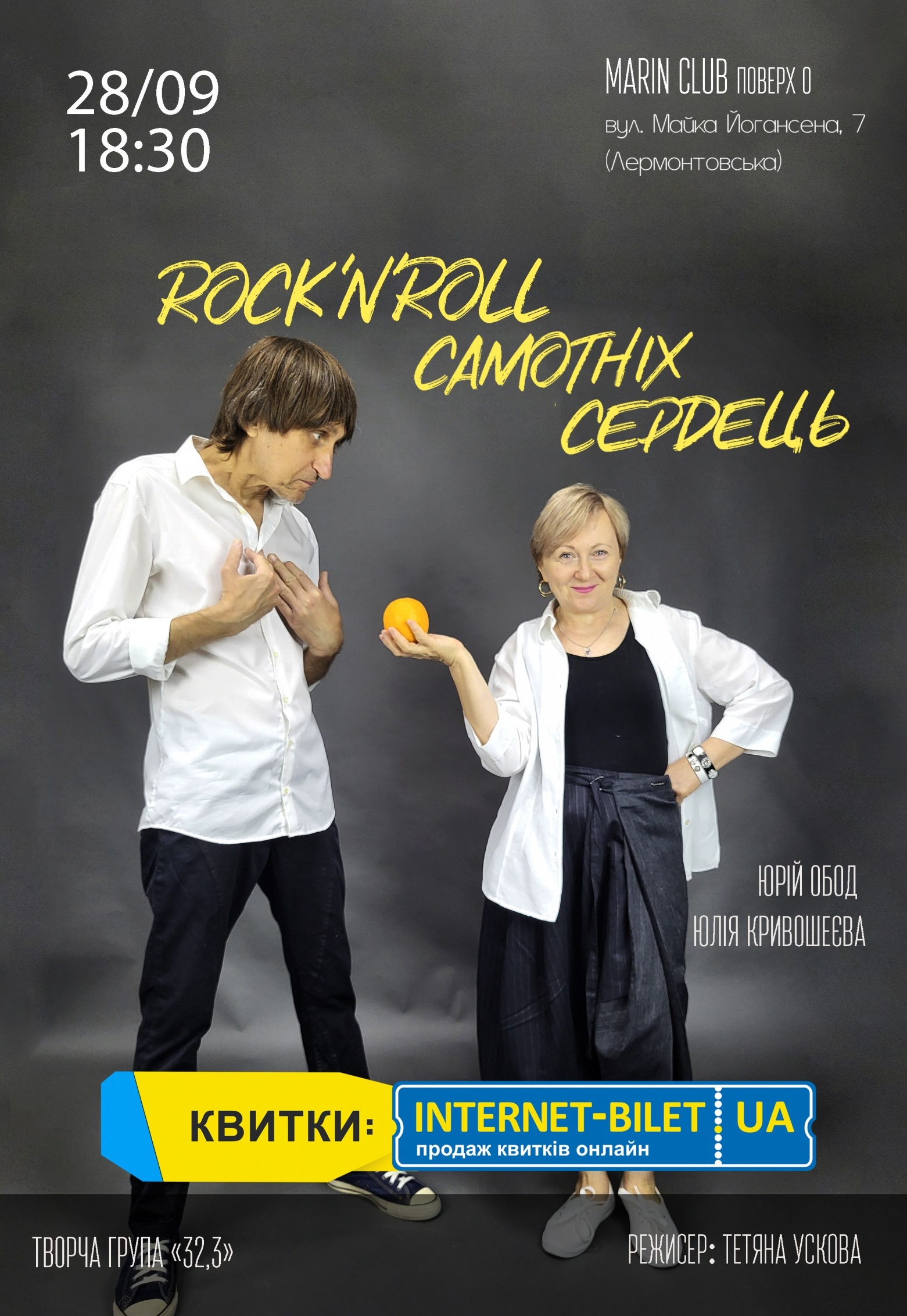 Вистава "Рок-н-ролл самотніх сердець" відбудеться 28 вересня 2025, 18:30, неділя в Marin Club. За допомогою сервісу internet-bilet.ua, Ви зможете з легкістю забронювати, замовити та купити квитки на концерт, спектакль, оперу, балет, майстер-класи, спортивні та дитячі заходи, що Вас цікавлять, оплативши їх найбільш зручним для Вас способом: через інтернет банківською карткою VISA/MasterCard, готівкою або кур'єром, якщо зробите замовлення квитка з доставкою.