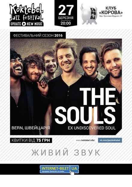 THE SOULS (Bern, Швейцария) відбудеться 27 березня 2016, 20:00, неділя в Клуб "Корова". За допомогою сервісу internet-bilet.ua, Ви зможете з легкістю забронювати, замовити та купити квитки на концерт, спектакль, оперу, балет, майстер-класи, спортивні та дитячі заходи, що Вас цікавлять, оплативши їх найбільш зручним для Вас способом: через інтернет банківською карткою VISA/MasterCard, готівкою або кур'єром, якщо зробите замовлення квитка з доставкою.