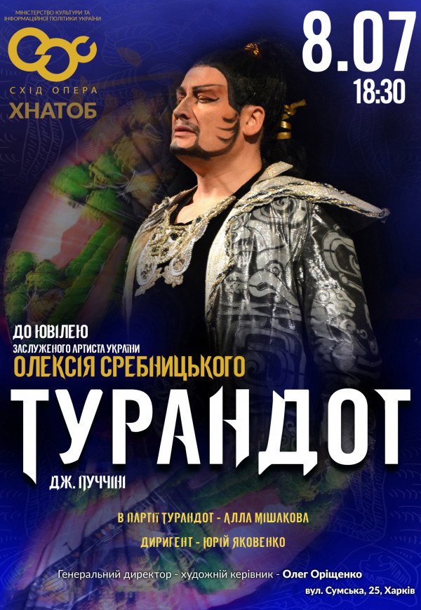 Турандот (опера) відбудеться 8 липня 2021, 18:30, четвер в ХНАТОБ. За допомогою сервісу internet-bilet.ua, Ви зможете з легкістю забронювати, замовити та купити квитки на концерт, спектакль, оперу, балет, майстер-класи, спортивні та дитячі заходи, що Вас цікавлять, оплативши їх найбільш зручним для Вас способом: через інтернет банківською карткою VISA/MasterCard, готівкою або кур'єром, якщо зробите замовлення квитка з доставкою.